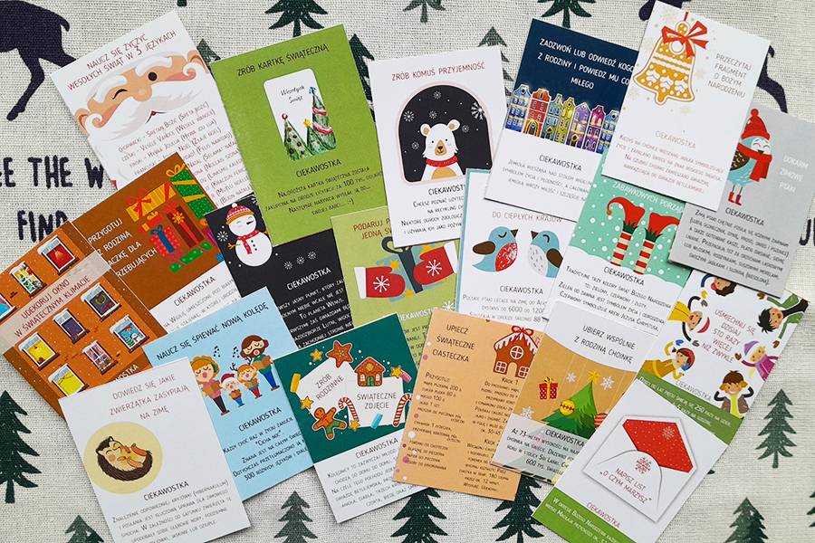 Podczas składania kalendarza, sami wybieracie jakie zadanie będziecie realizować. Jeśli jakieś nie będzie Wam odpowiadało, spokojnie, przygotowaliśmy też trzy puste karty, na których możecie zapisywać swoje pomysły.