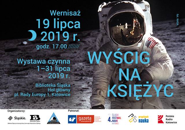 W piątek 19 lipca o 17:00, w przeddzień 50. rocznicy pierwszego załogowego lądowania na Srebrnym Globie w Bibliotece Śląskiej odbędzie się wernisaż wystawy „Wyścig na Księżyc”. To ekspozycja przygotowana wspólnie przez Bibliotekę i Planetarium Śląskie w Chorzowie.