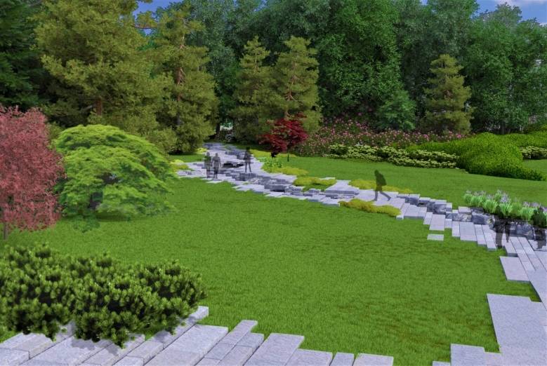 Zakres: Ogród Japoński, który znajduje się w centralnej części Parku Śląskiego, przeszedł niezwykłe przeobrażenie. Po zakończeniu prac jego powierzchnia powiększyła się dwukrotnie i zajmuje 12,5 tys. mkw. Powstał dwupoziomowy zbiornik, a także wodna kaskada. Nad wodospadem znajduje się częściowo przeszklony taras widokowy o powierzchni około 28 mkw., umożliwiający oglądanie wodospadu z góry. W części wschodniej i południowo-wschodniej zaprojektowano „wiśniowy sad”, z wykorzystaniem różnych gatunków oraz odmian wiśni. Dodatkową atrakcją jest przestronna altana wykonana w stylu orientalnym.