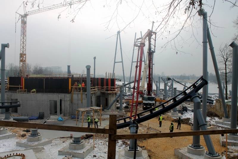 Wielki plac budowy w Śląskim Wesołym Miasteczku. Strefa Lech Coastera, wejście i ogromna restauracja