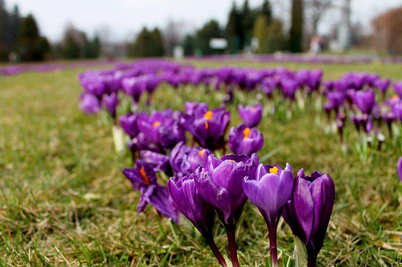 Kwitnącą fioletową odmianę krokusów w Parku Śląskim można było podziwiać już w zeszłym roku. Kilka tysięcy cebulek tych roślin dwa lata temu metodą mechaniczną zasadzono przy pierwszej bramie od strony Ogrodu Japońskiego.