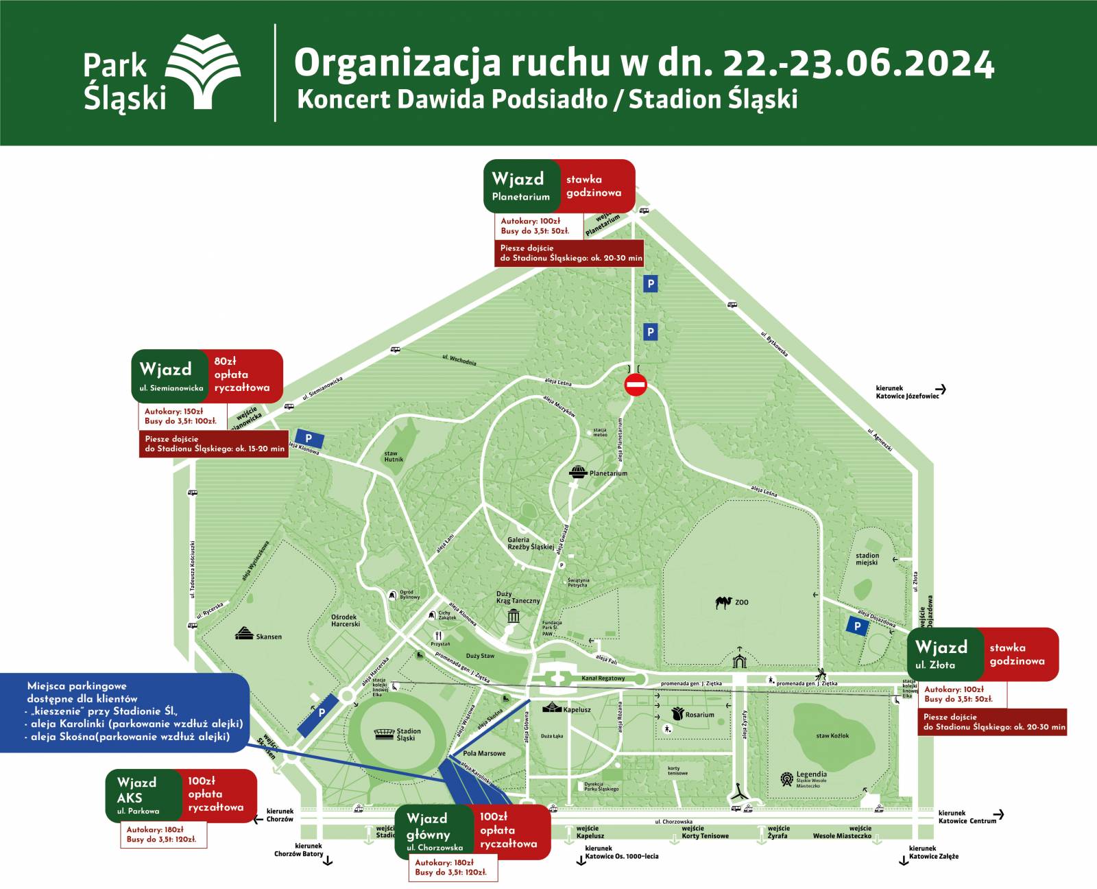 Zasady wjazdu do Parku Śląskiego w dniach 22-23.06.2024 r.