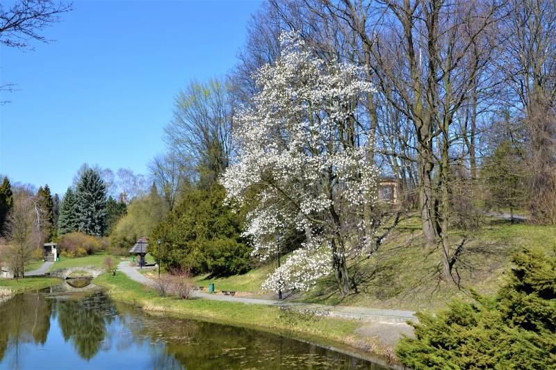 W Cichym Zakątku, przy budynku dyrekcji i w pobliżu Rosarium rozkwitły magnolie, a na alei Ziętka wiśnie.