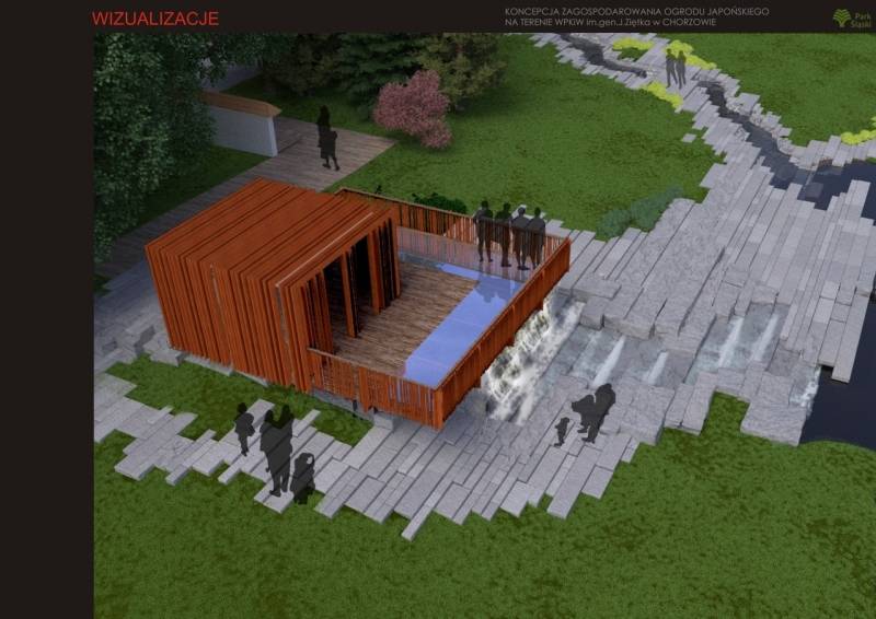 1. Ogród Japoński, który znajduje się w centralnej części Parku Śląskiego, przechodzi metamorfozę. Po zakończeniu prac jego powierzchnia powiększy się dwukrotnie, docelowo ogród zajmie 12,5 tys. metrów kwadratowych. Innowacyjnego charakteru nabierze układ wodny. Powstanie dwupoziomowy zbiornik, a także wodospad. Nad wodospadem zaprojektowano częściowo przeszklony taras widokowy umożliwiający oglądanie wodospadu z góry. Z tarasu będzie można podziwiać widok na cały ogród. W części wschodniej i południowo-wschodniej zaprojektowano „wiśniowy sad”, z wykorzystaniem różnych gatunków oraz odmian wiśni. Dodatkową atrakcją będzie przestronna altana wykonana w stylu orientalnym.