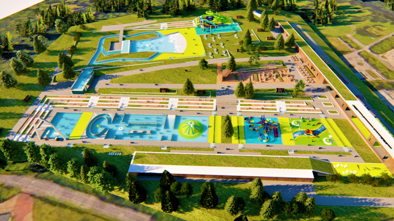 Scope: Two water playgrounds will be built for children, with geysers, water cannons, fountains and a floating castle with small slides. Older kids will certainly enjoy the so-called wet bubble – an inflated airbag several metres high and crowned with a fountain will be a unique attraction. Of course, the investment project also includes water slides. There will be five in total, both open and enclosed, and the longest will be nearly 100 m long.