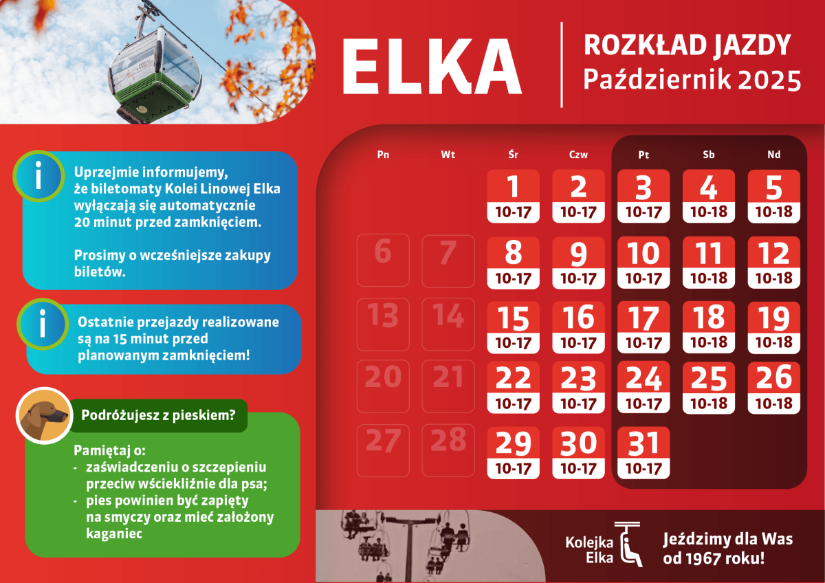 Apelujemy o solidarność wszystkich właścicieli psów, aby przestrzegali obowiązującego regulaminu. Działamy w trosce o uniknięcie stresu oraz zapewnienie bezpieczeństwa i komfortu zarówno Wam, jak i innym korzystającym z przejazdu Koleją Linową ELKA. Dziękujemy za zrozumienie