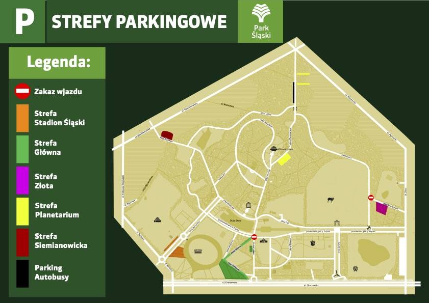 Mapa stref poruszania się po Parku Śląskim samochodem dostępna w załączniku.